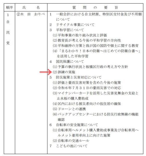 国際情勢が緊迫する中、私も区に国民保護訓練の実施を求めています。