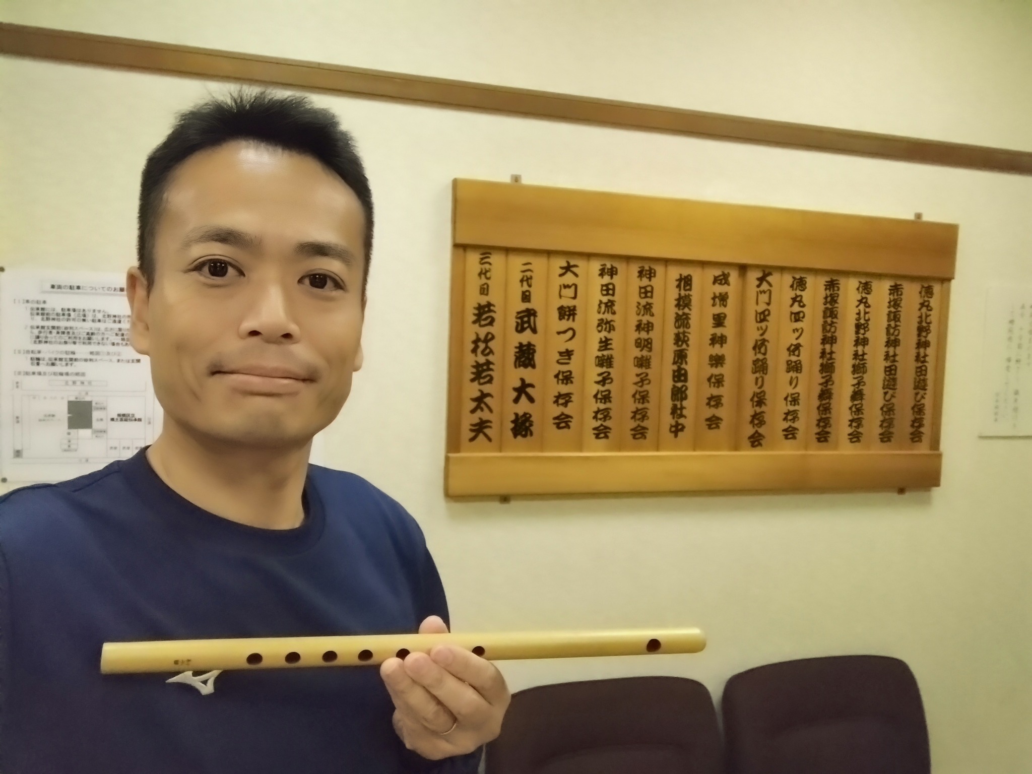 本日も獅子舞を一度練習した後に囃子の笛の練習。