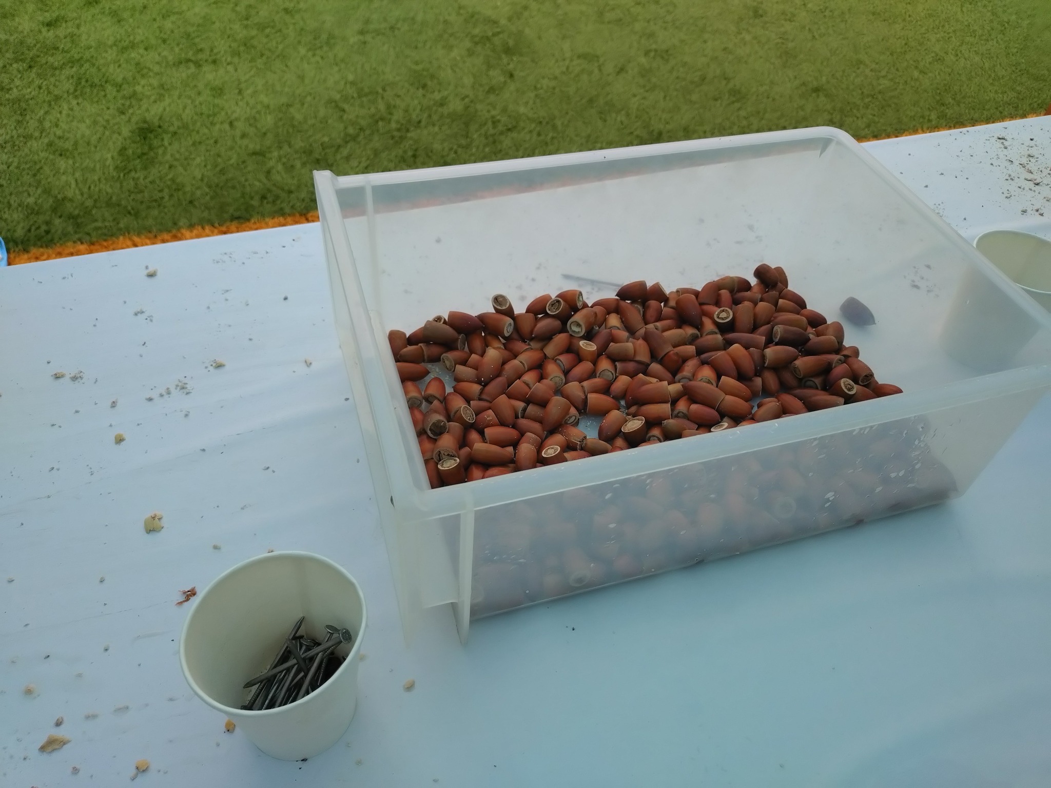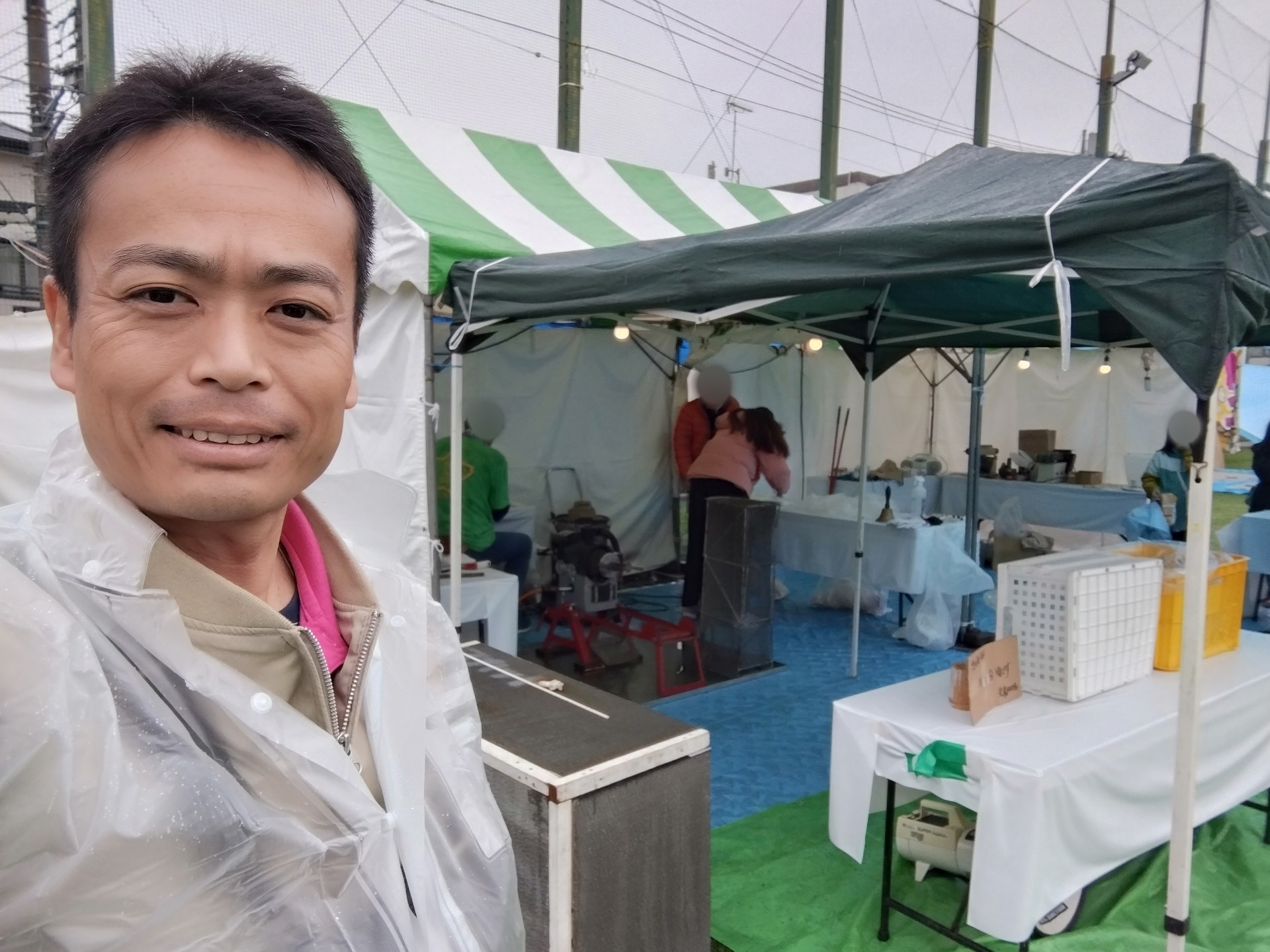 雨天でお神輿などは中止となってしまいましたが、昨日に続き、赤塚体育館少年運動場で赤塚おやじ連合でポン菓子の無料配布とドングリ笛をやっています。