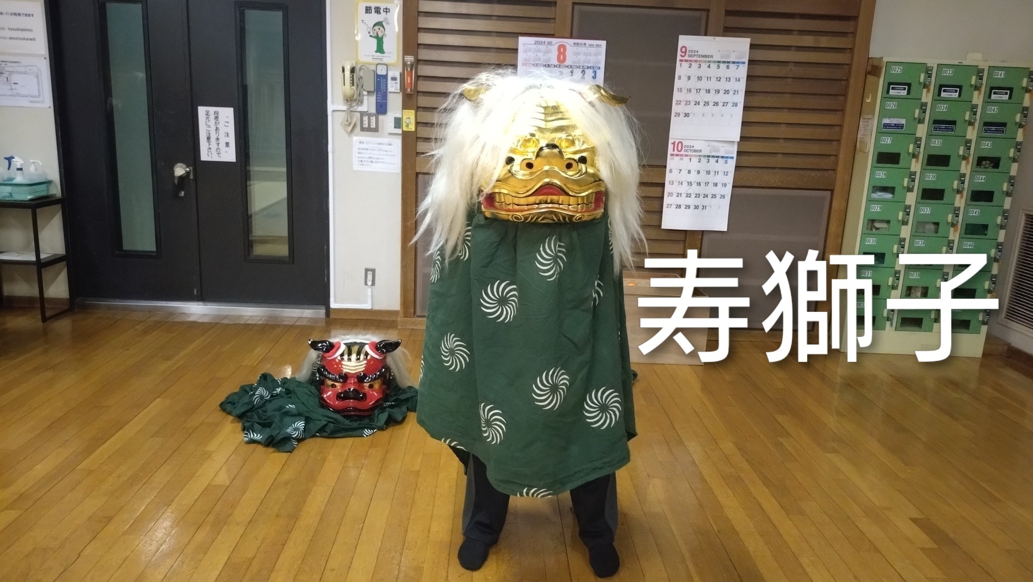 徳丸三ツ和会の寿獅子舞&お囃子(はやし)は、毎年1月2日に町会の家々を回って厄払いや無病息災祈念のために舞いますが、私はまだ獅子役かと。