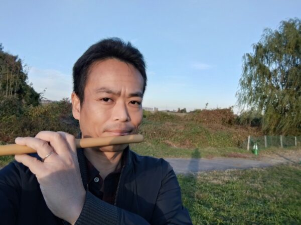 新河岸陸上競技場での「ドローン×防災・減災」に参加し、「板橋区かわまちづくり連絡橋工事」の様子を確認した後、荒川河川敷でやってみたかった笛の練習