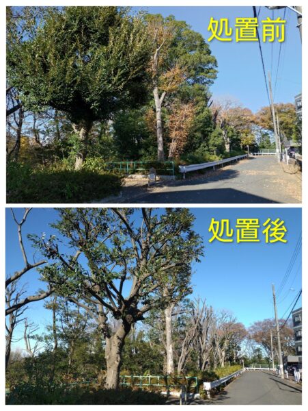 区に処置を依頼したところ、速やかに樹木の剪定(せんてい)をしていただけました。