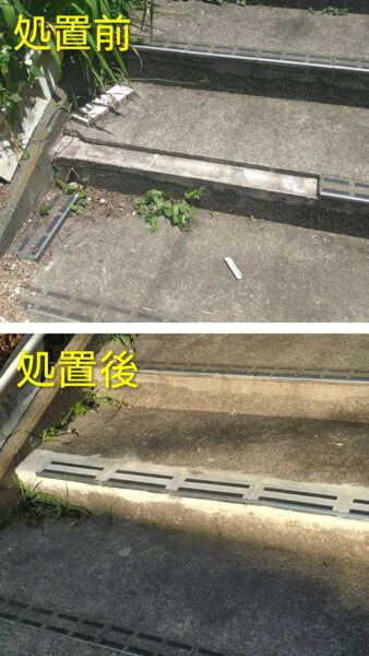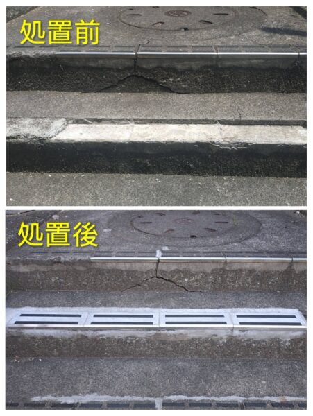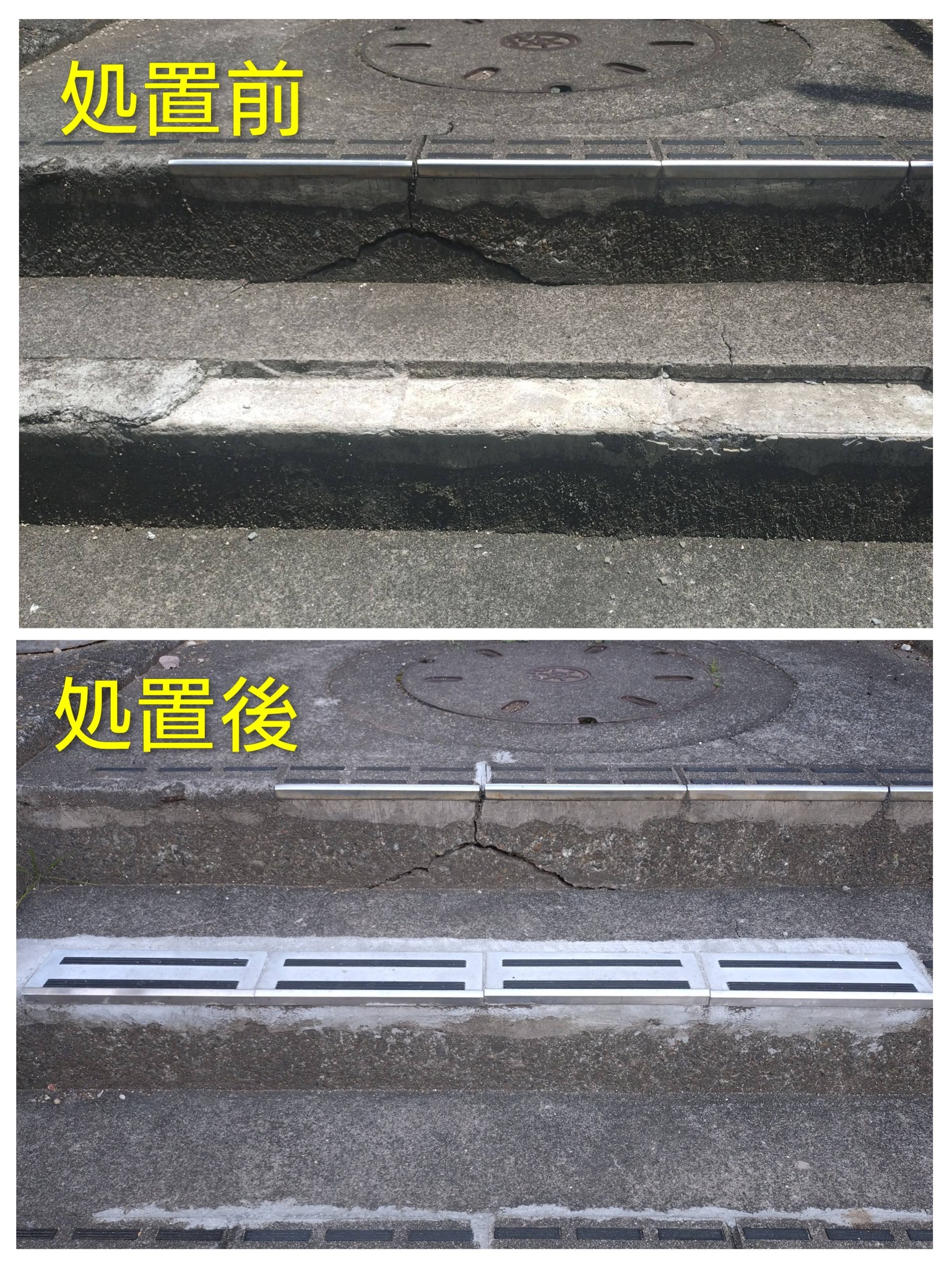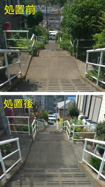 区民の方から、区道の階段の手すりの塗装がはげており、手を痛めたりするとのご相談。 階段のはがれもあり、併せて区に対応を要望し、塗装と補修をしていただいたほか、階段の脇の木なども剪定していただきました。 ありがとうございます😊