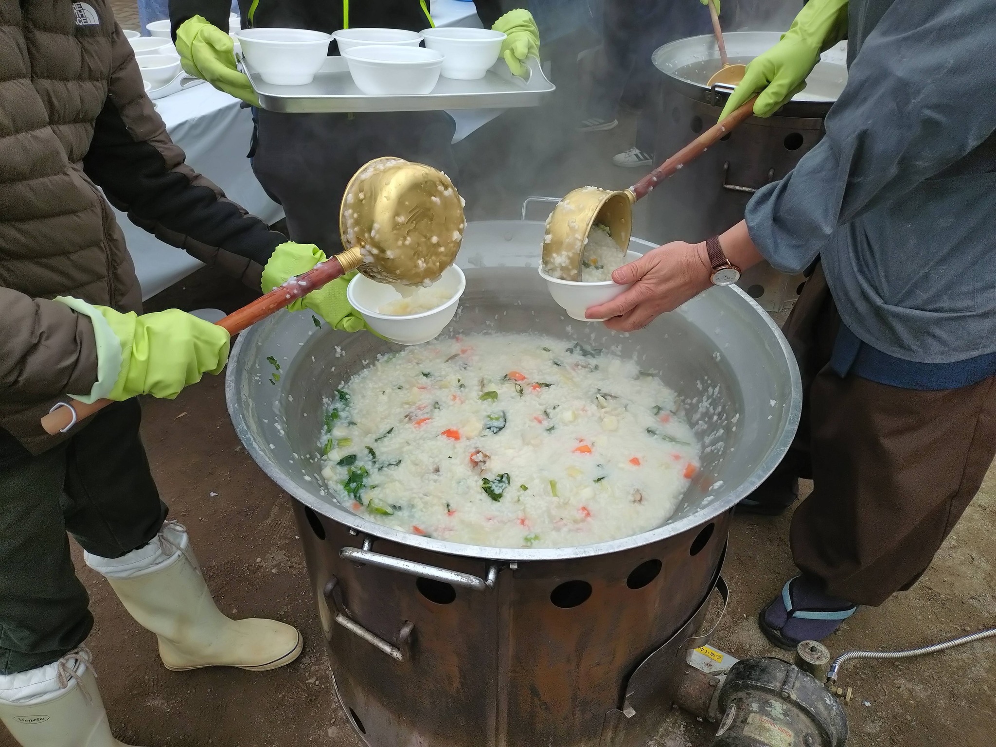 新春七草がゆの集い🌿 板橋区では、七草と畑で収穫した里芋、長ネギ、人参などを加えたおかゆが伝えられています。 餅も入っており、塩加減も絶妙で美味しかったです😃 長女と分け合っていただきました😊 ありがとうございます🙇