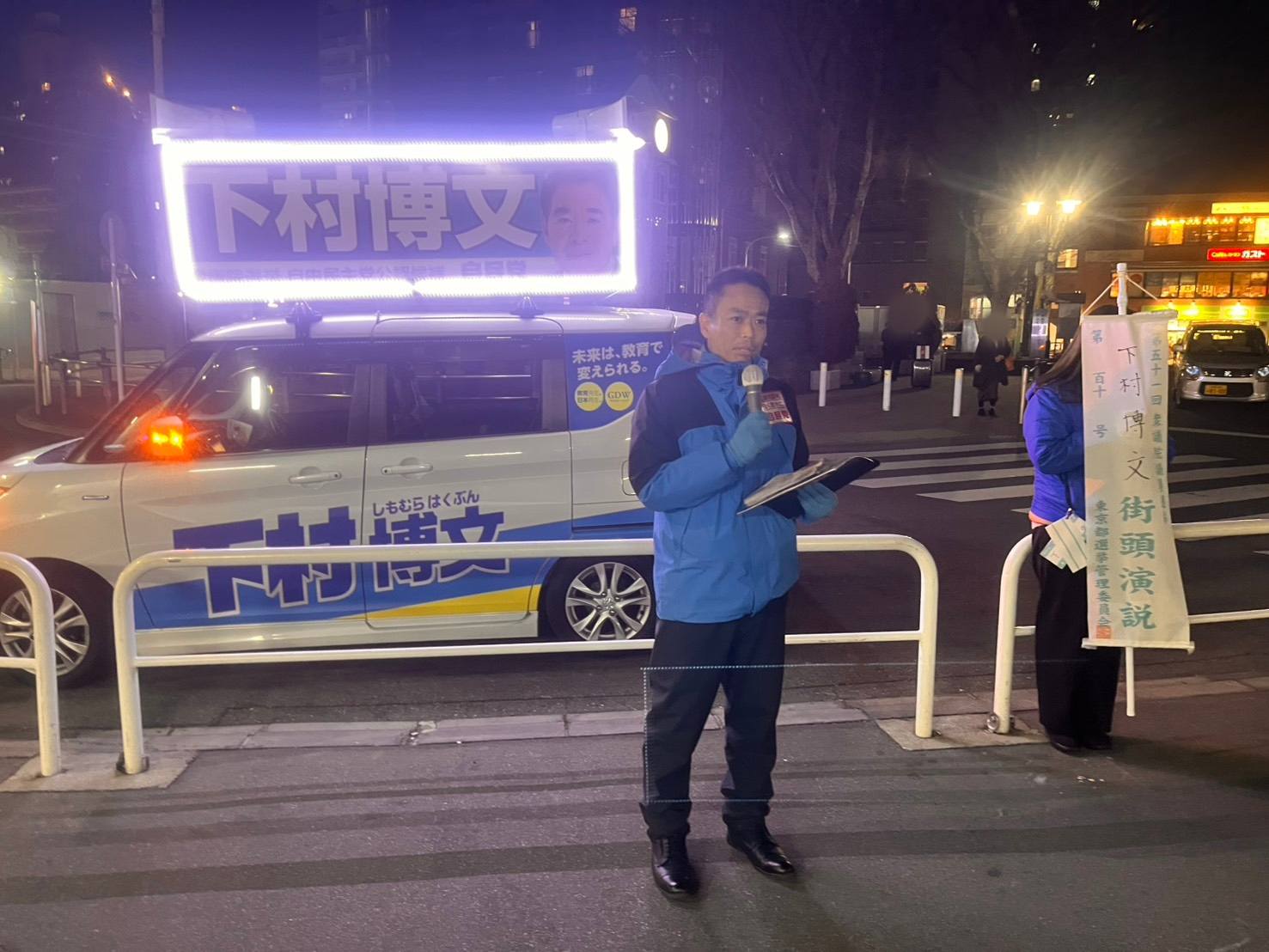 下村博文候補は各地で教育改革、物価高騰対策、外交安全保障への取り組み、外国人政策などを区民の皆さんに対して演説しました。