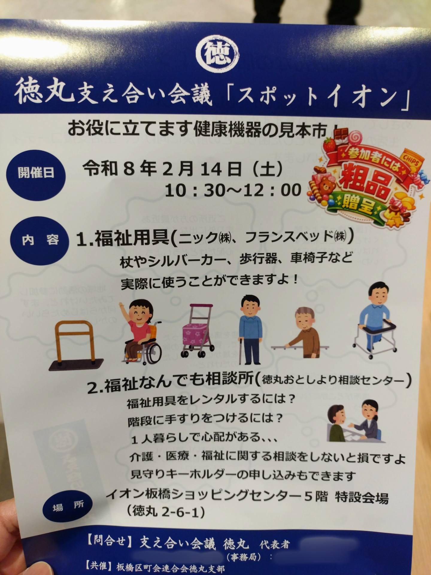 支え合い会議徳丸の「スポットイオン」😃 イオン板橋ショッピングセンターさんにて、シルバーカーや車椅子などの試乗や、おとしより相談センターさんによる福祉なんでも相談を開催。 車椅子にも様々な特性があり、学びになりました😊
