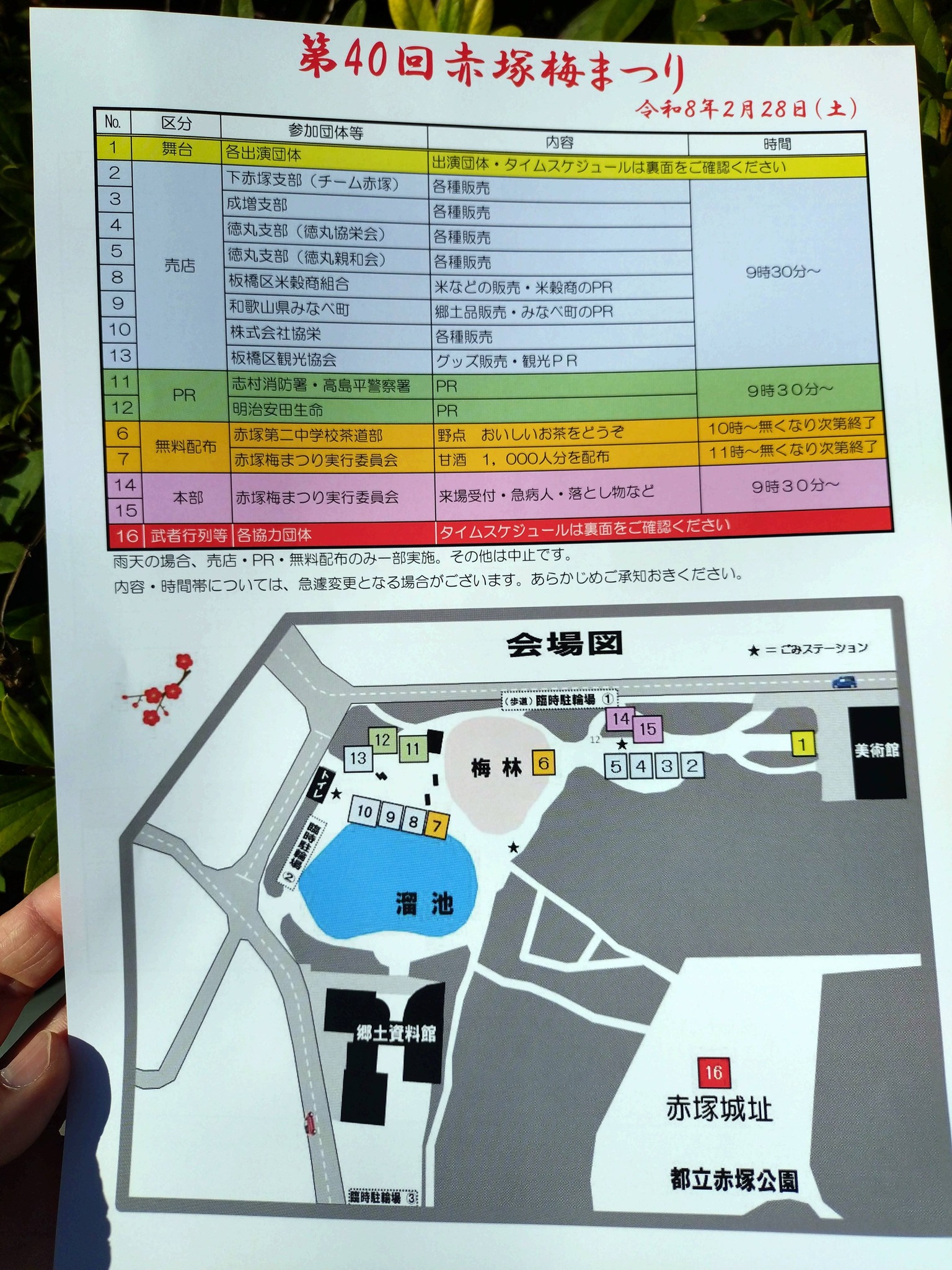 「赤塚梅まつり」が赤塚溜池公園・赤塚城址で本日15:00まで開催中😃