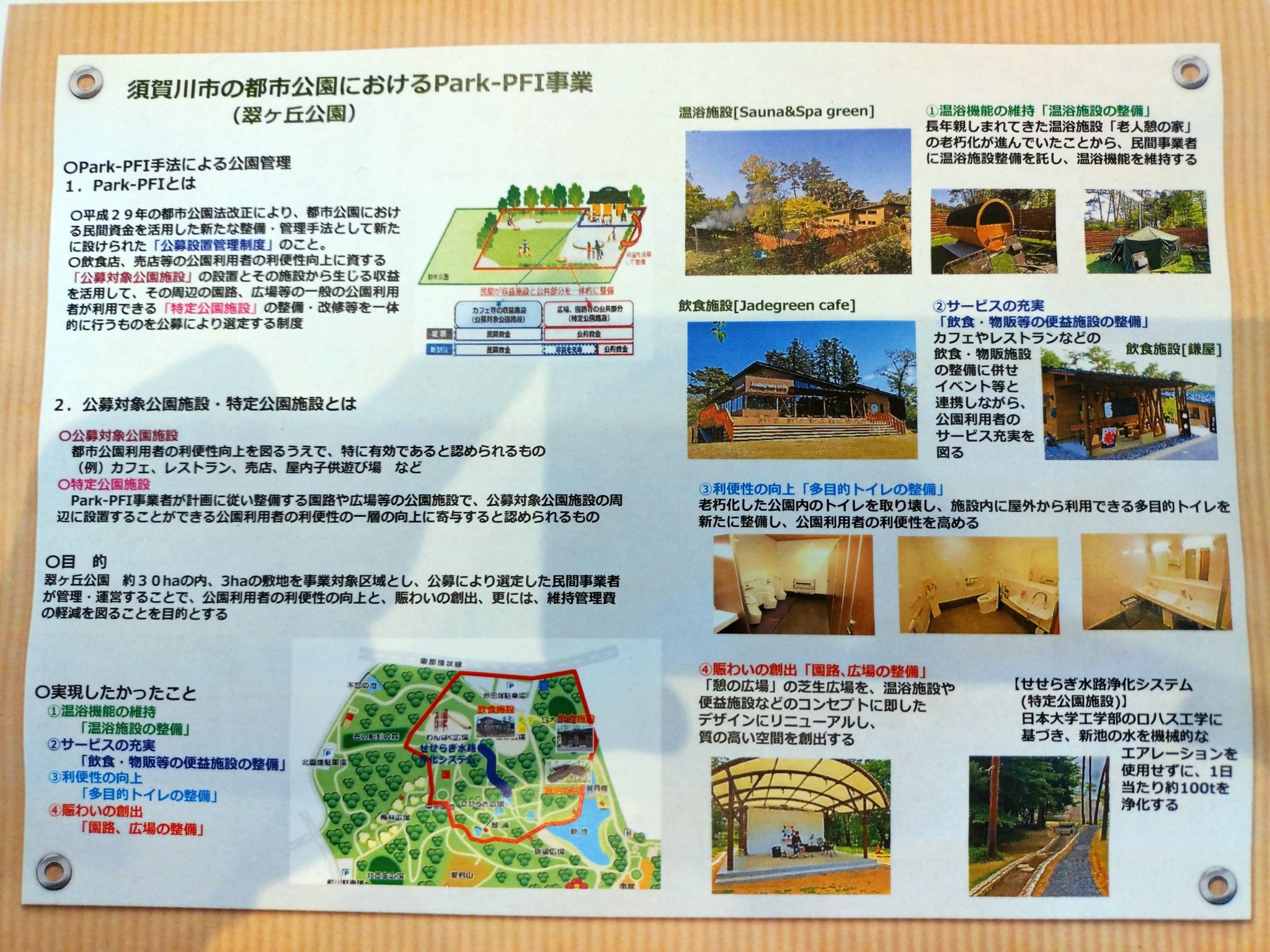 などがあり、事業者がその収益を還元し、公園約30haのうち、3haの敷地を管理運営しています。